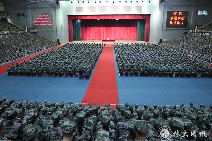 【林大网讯】“年轻的你们,怀揣着梦想。支持和帮助你们将梦想变为现实,是学校愿意努力和你们一直打造的大学品质生活,是学校和你们共同的大学初心。”9月12日下午,学校6000余名2017级本科新生入学教育在体艺馆举行。校党委书记赵运林以“如何度过有品质的大学生活”为主题,为新生们上了一堂精彩生动、内涵深刻的“入学第一课”。副校长陈冬林主持。